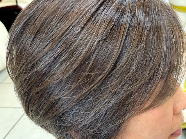 仕上げでのドライカットは必須で、自宅でシャンプーした後の手入れをイメージしながらカットしています。究極は洗って上下左右均一に乾かすとスタイリングの完了ですが、これには丁寧なシャンプーが基本になります。
